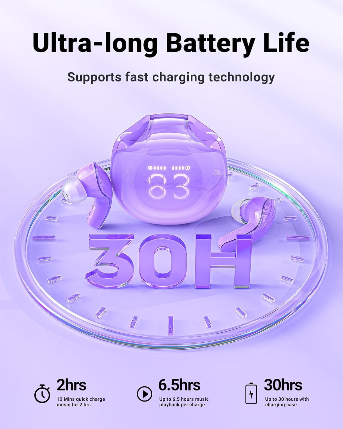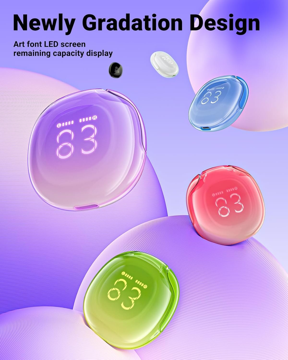 - [Artistic Font Design,LED Power Display] Original artistic font design, presenting a new LED digital display.The LED power display the charging case makes it easy for you to check the remaining power of the case.Once both earbuds are placed back into the charging case, both earbuds will begin charging. When the earphone compartment is fully charged, the screen displays OK, the earphones are fully charged, all the battery grids are on.
